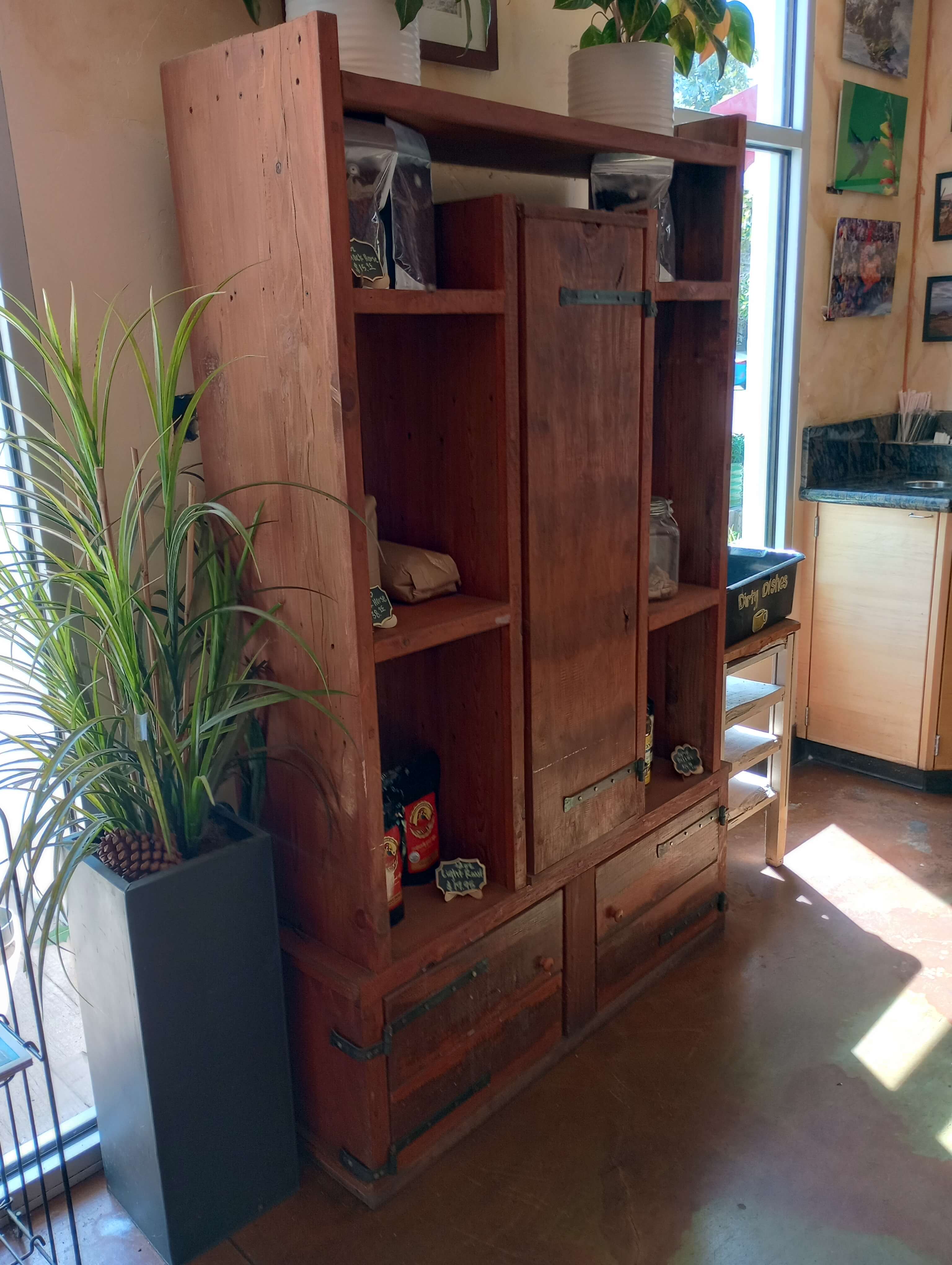 HemanHill manufactures two lines of furniture that are designed to create a unique style for your gallery. The French Country and Italian Country lines are made from old barnwood. The Live Edge line is made from reclaimed trees. Both lines are environmentally friendly, finished in water-based paint and polyurethane. The hardware is handmade by a blacksmith in Santa Barbara.